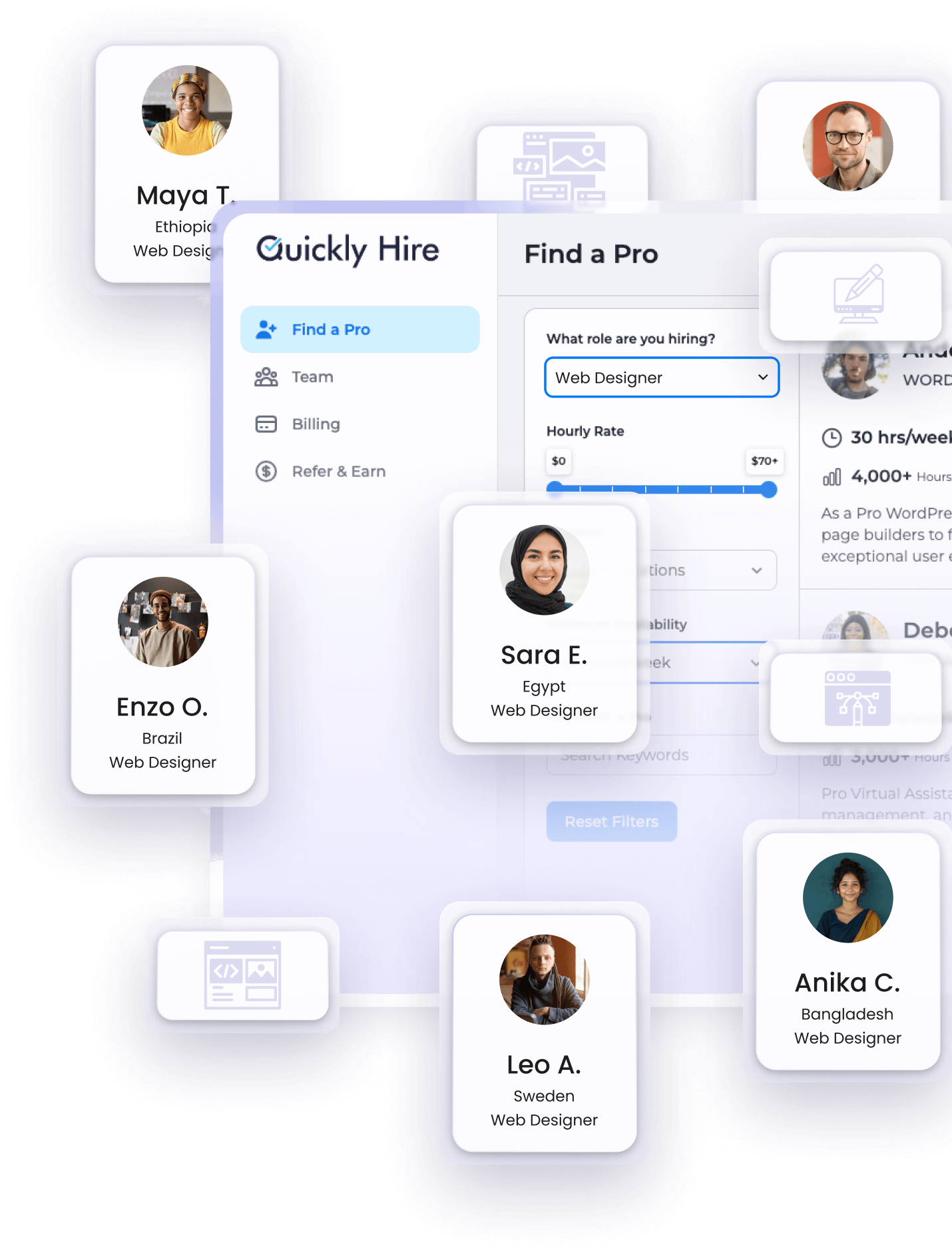 Quickly Hire gives you access to global design talent on a flexible basis, enhancing your user experience without the commitment of a full-time hire.